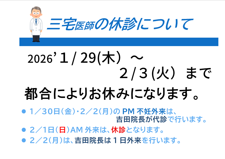 三宅医師のお休み(2026’1/29~)