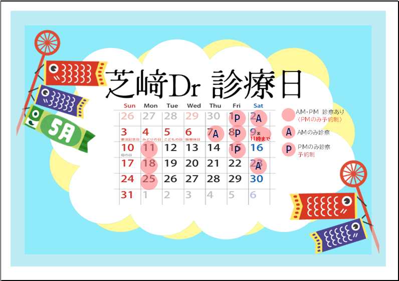 芝﨑医師:5月診療日のお知らせ